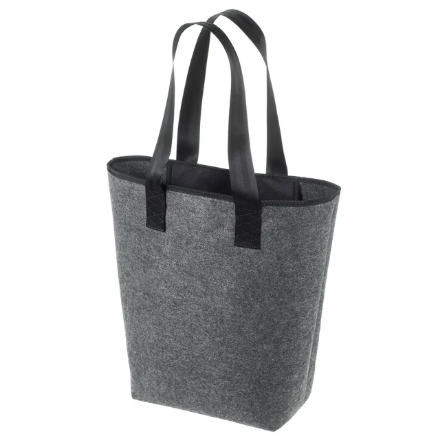 100% feltro. Shopper dotata di organizer interno con cerniera. Dimensioni base: 26 X 40 X 14 cm, Dimensioni top: 26 x 44 x 14 cm, capacita': 20 litri, area stampabile: 17 x 18 cm.