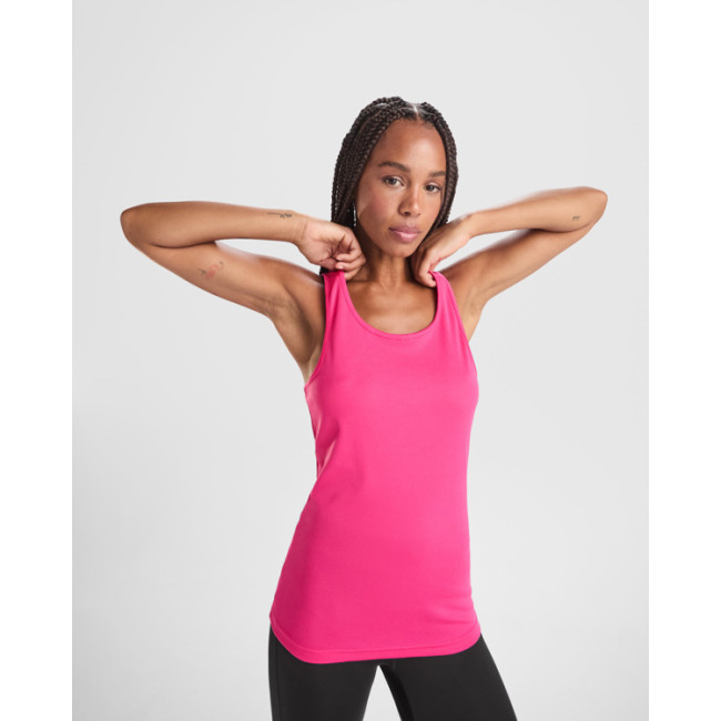 Canotta tecnica aderente traspirante. Girocollo e giromanica bordati tono su tono. Schiena sagomata. Certificazione UV.