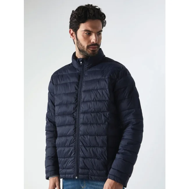 100% nylon. Piumino a trapunte orizzontali, 100% nylon 380T- imbottitura 100% poliestere, full zip centrale, tasche laterali, fit regolare, super leggero e pratico da riporre nell'apposita custodia.