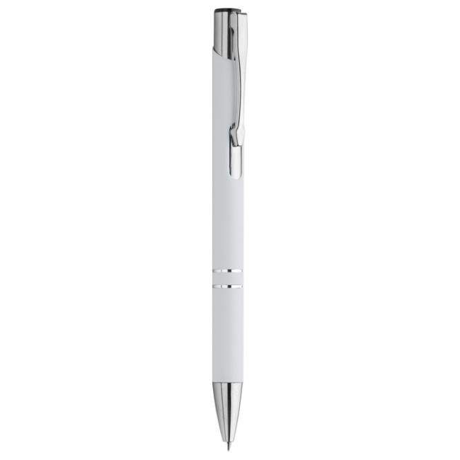 penna a sfera in metallo meccanismo a scatto fusto in materiale soft touch minuterie cromate refill nero