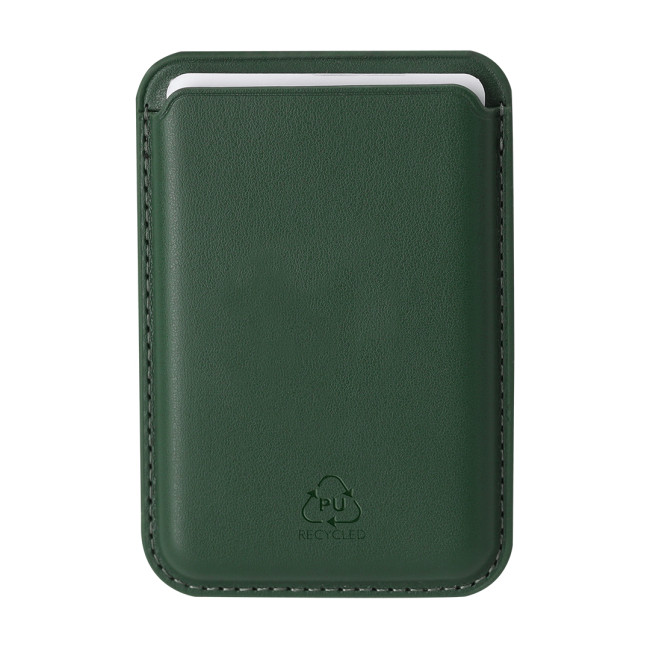Copertura portacarte in elegante PU riciclata. Con sistema di fissaggio magnetico. Include un foro sul retro per una facile rimozione delle carte. Con il distintivo PU riciclato.