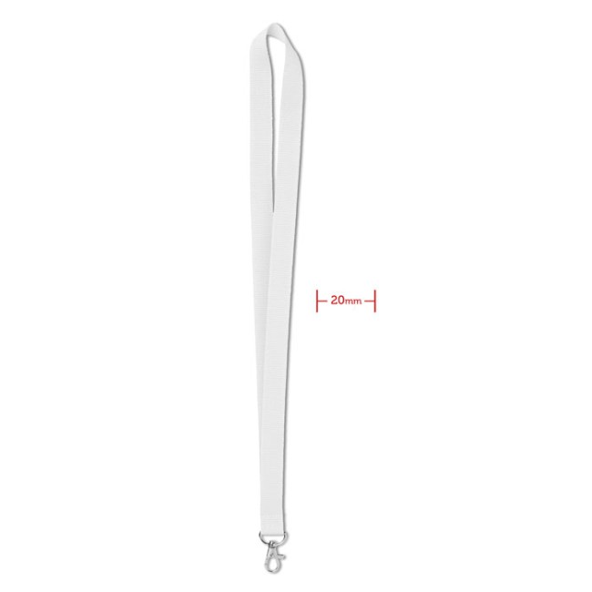 Lanyard con gancio di metallo. 20mm. Stampa in sublimazione disponibile sono sull’articolo di colore bianco.