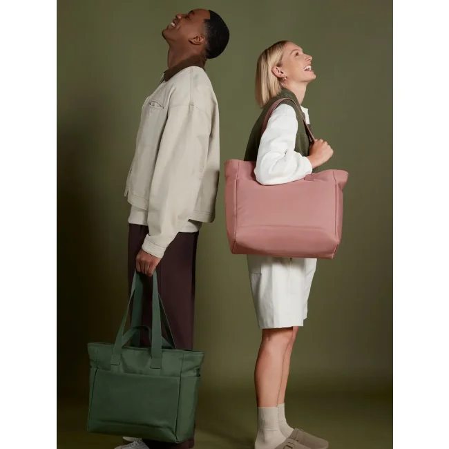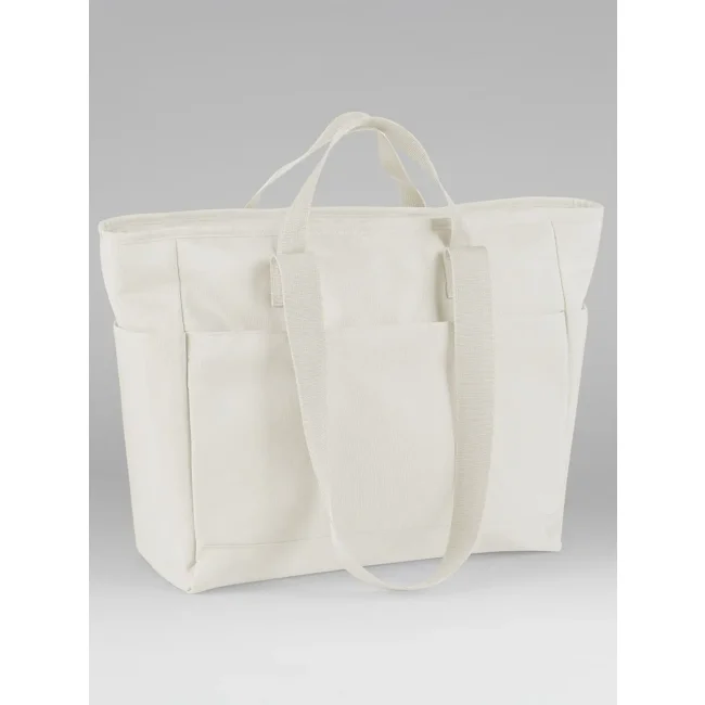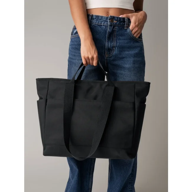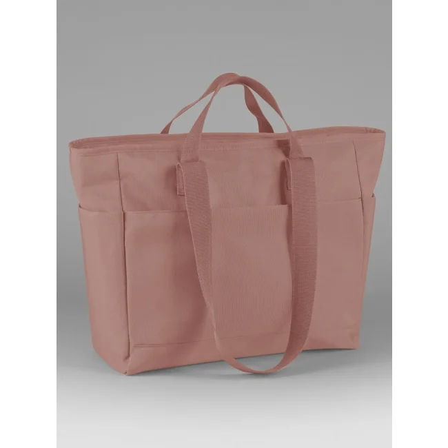 Simplicity Tote è una shopper a doppio manico realizzata in 100% poliestere riciclato 600D. Presenta un ampio scomparto principale con cerniera, tasca interna e tasche laterali. La lunghezza dei manici è di 35/85 cm, con una capacità di 32 litri. Certificata GRS da Control Union CU811033, è idrorepellente e dotata di etichetta removibile. Area di stampa: 34x18 cm.