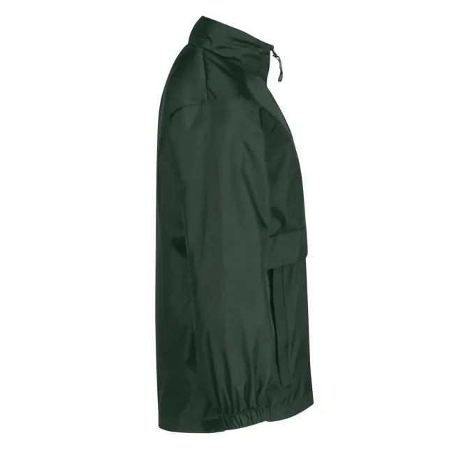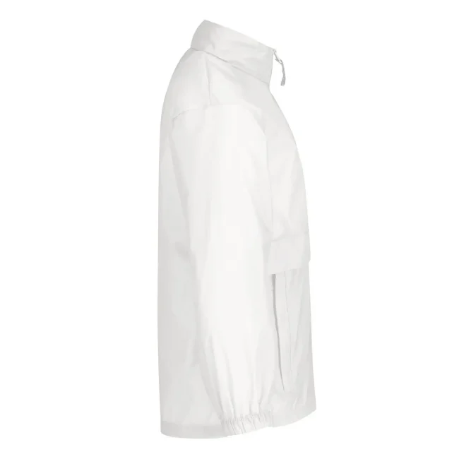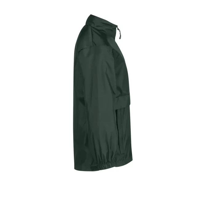 100% nylon impermeabile taffeta. K-way richiudibile nella tasca interna, con cappuccio richiudibile nel collo, cordoncino regolabile nell'orlo inferiore.
