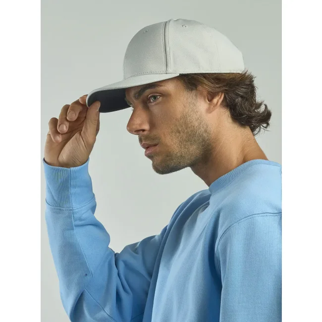 100% poliestere riciclato certificato. Cappellino strutturato a 6 pannelli, tinto con tecnica DopeDyeing. Cuciture in tinta, mid visor e 6 occhielli. Chiusura a strappo di alta qualità, etichetta removibile.