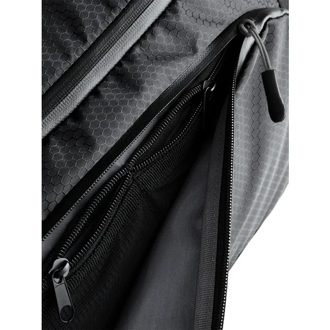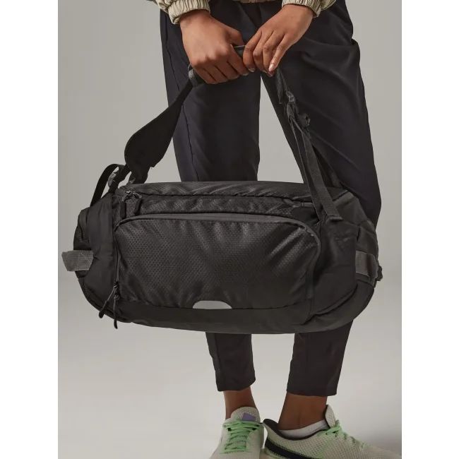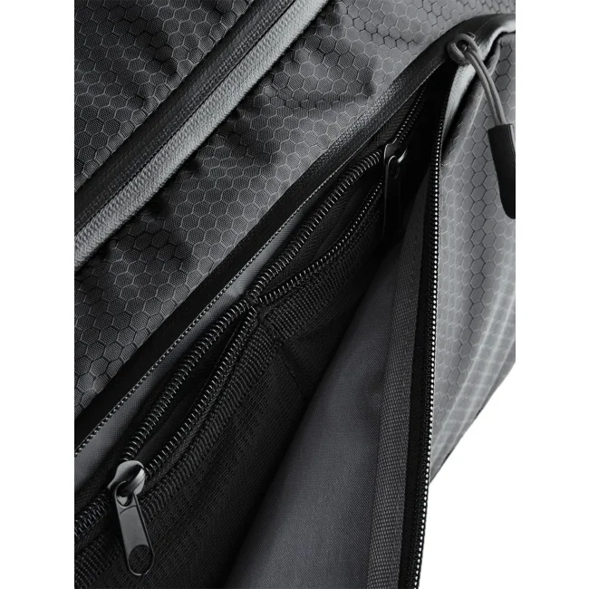 100% Combinazione di poliestere 600d/600d a nido d'ape. Borsone con zip con cordini catarifrangenti, compartimento principale imbottito, compartimento con zip per scarpe, base imbottita rinforzata. Dimensioni: 54 x 27 x 34 cm, capacita': 30 litri, area di stampa: 28 x 9 cm.