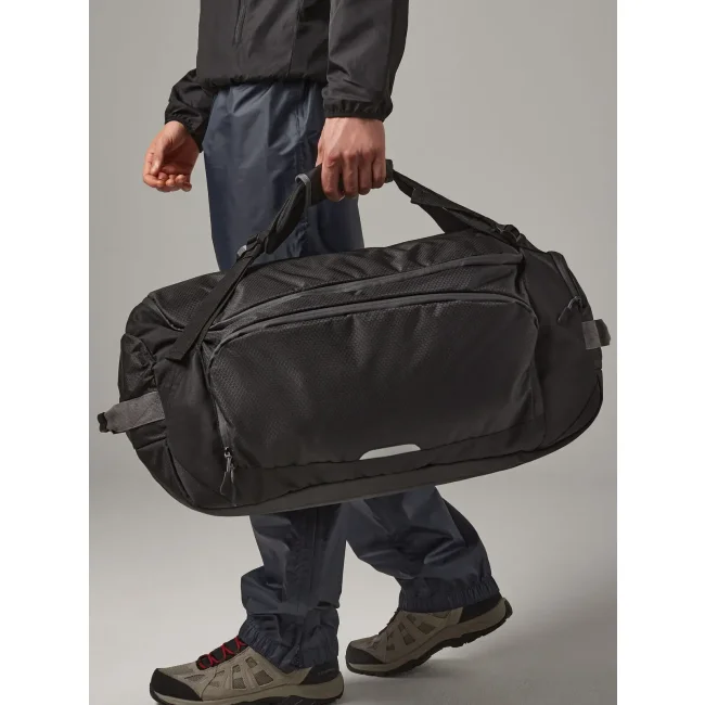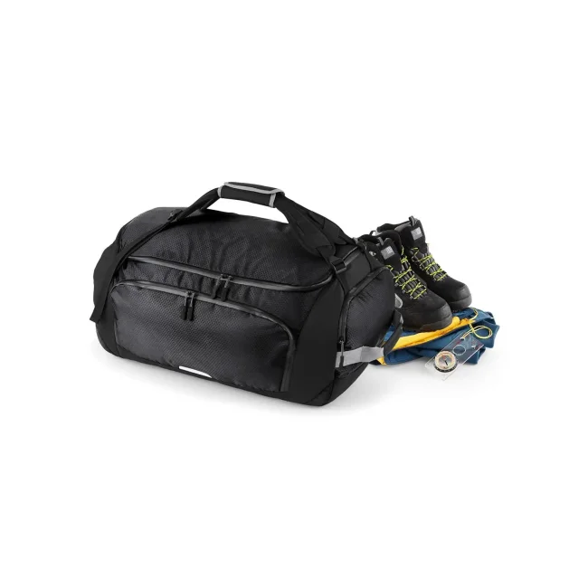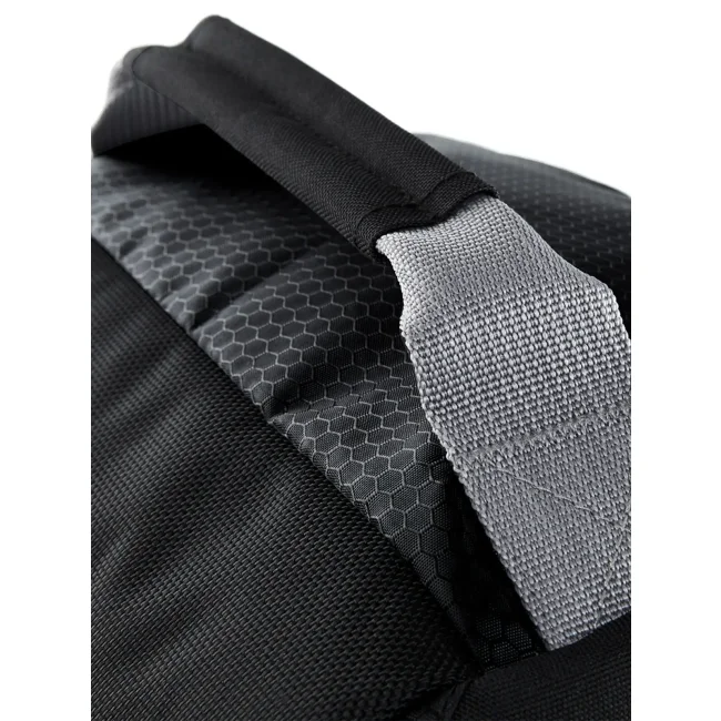 100% Combinazione poliestere 600d/600d a nido d'ape. Borsone con zip con cordini catarifrangenti, compartimento principale imbottito, compartimento per scarpe, base imbottita rinforzata. Dimensioni: 67 x 33 x 42 cm, capacita': 60 litri, area di stampa: 36 x 14 cm.