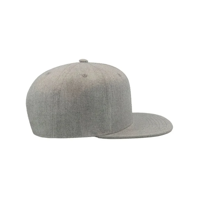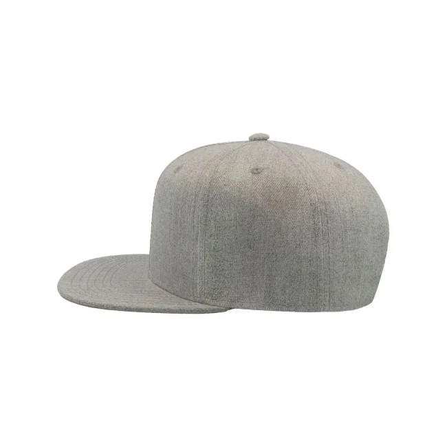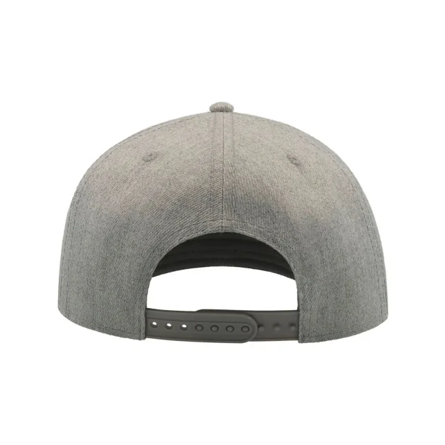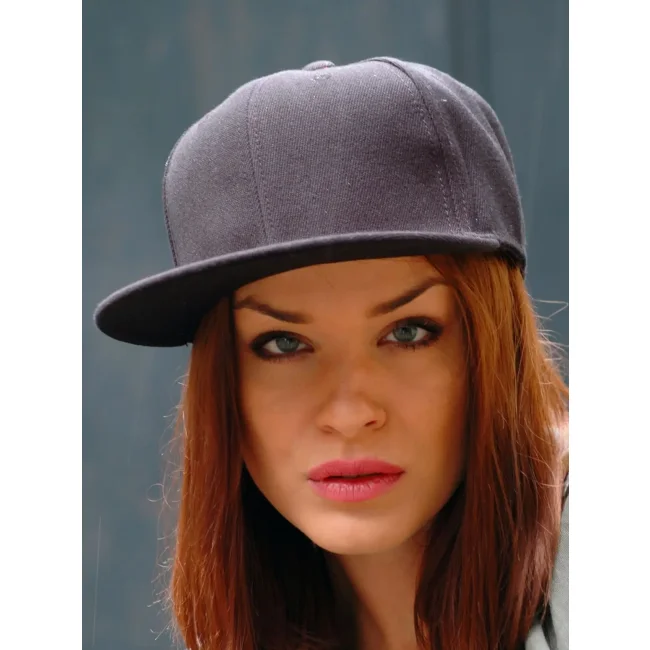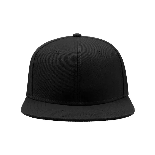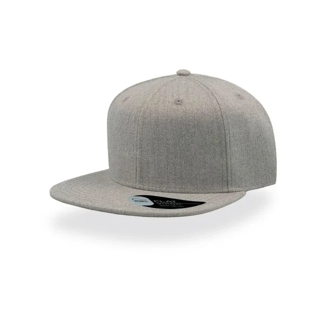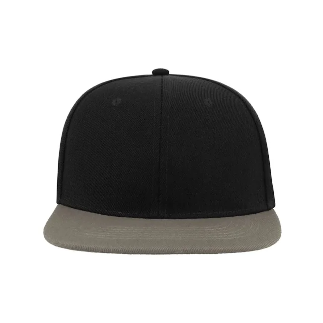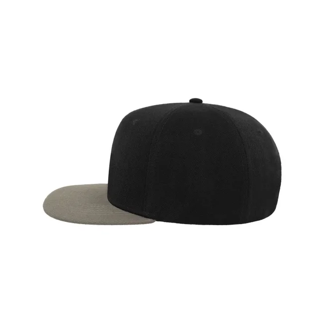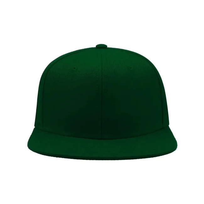 100% acrilico twill. Cappellino a 6 pannelli con occhielli ricamati, visiera piatta, pannello frontale rinforzato, adesivo sulla visiera, chiusura con cinturino in pvc, etichetta removibile, taglia unica.