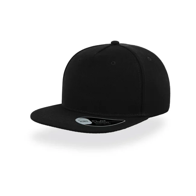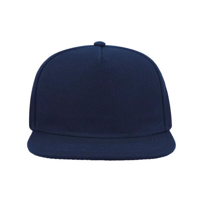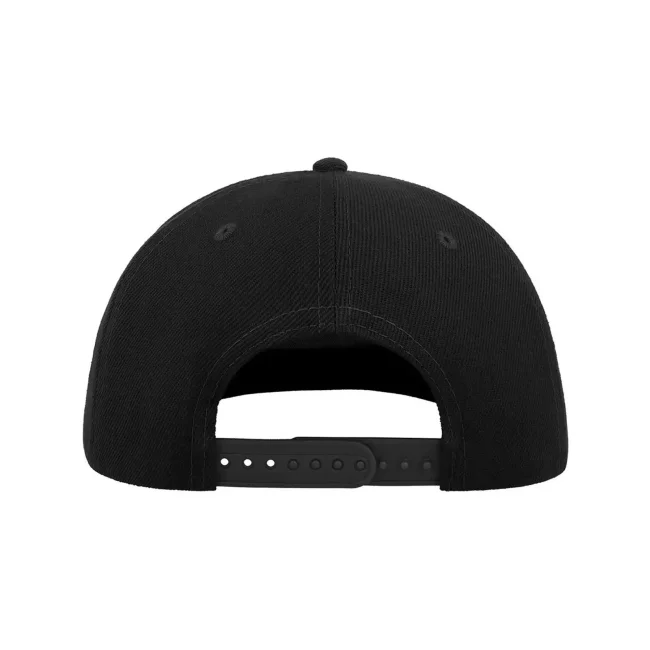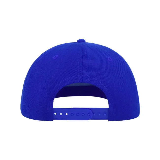 100% acrilico. Sottovisiera: 100% cotone, parasudore: 35% cotone, 65% poliestere. Cappellino a 5 pannelli, visiera piatta, occhielli ricamati, pannello frontale rinforzato, adesivo sulla visiera, chiusura snapback in pvc, ideale per la stampa, 6 cuciture su visiera, taglia unica. Etichetta removibile.