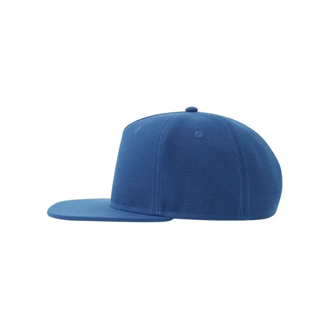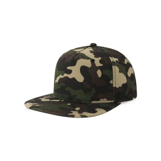 100% poliestere twill riciclato. Cappello 5 pannelli in poliestere riciclato, con visiera piatta e chiusura snapback in in PVC riciclato, etichetta removibile.