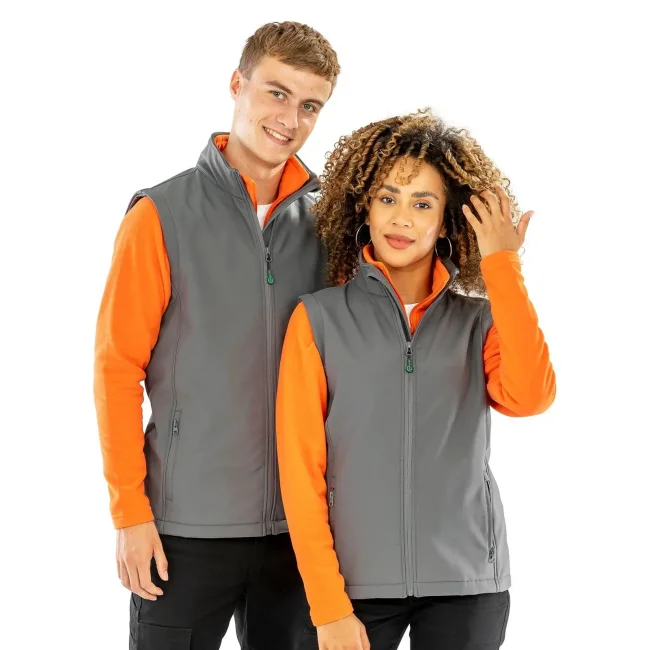 100% poliestere riciclato TOPGREEN®. Interno: 100% poliestere riciclato micropile. Gilet in softshell stampabile con colletto alto, taglio attillato, zip YKK NATULON® Eco-Friendly.
