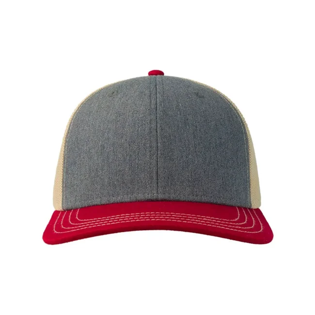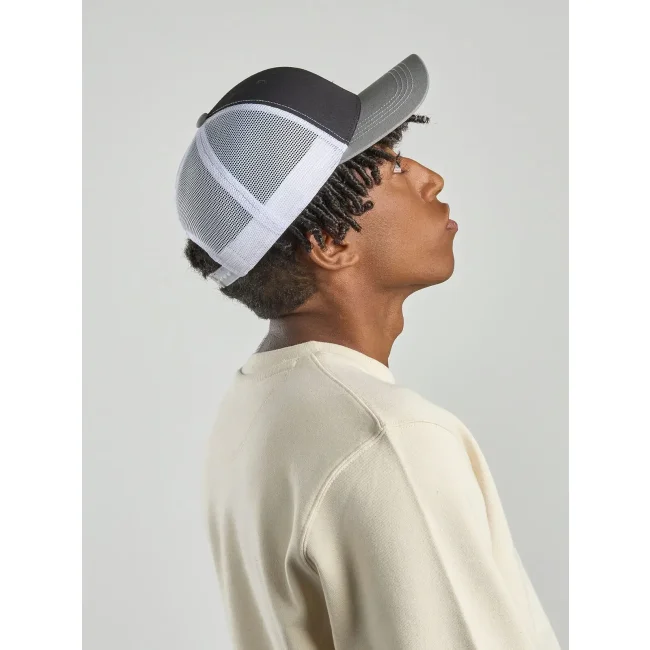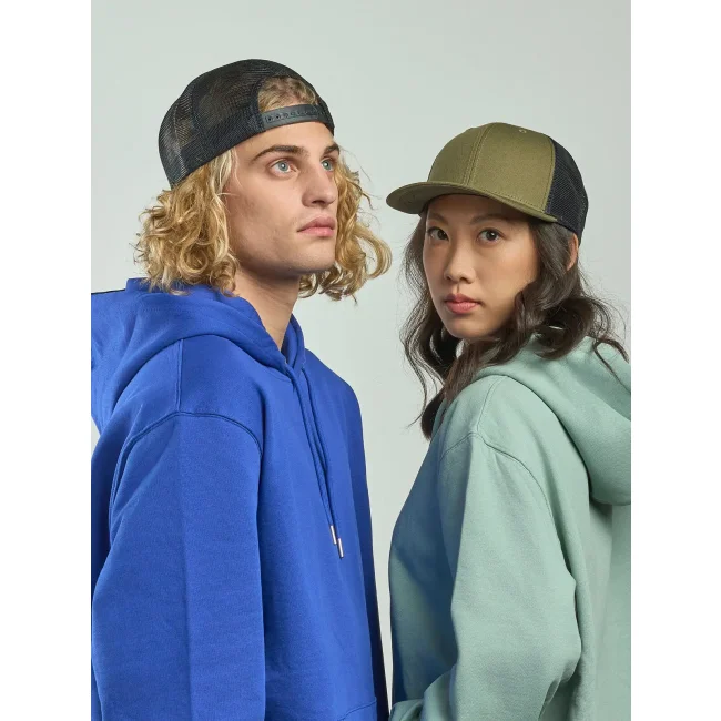 100% cotone twill chino. Tessuto laterale e retro: 100% poliestere. Cappellino a 6 pannelli, visiera precurvata e occhielli ricamati, chiusura in PVC, 4 cuciture sulla visiera, etichetta removibile.