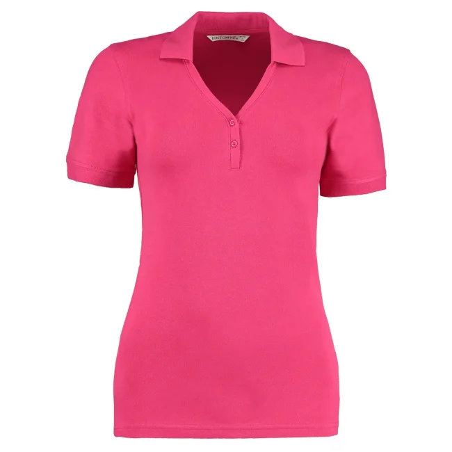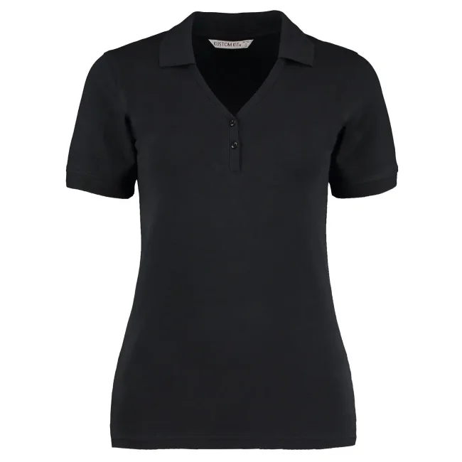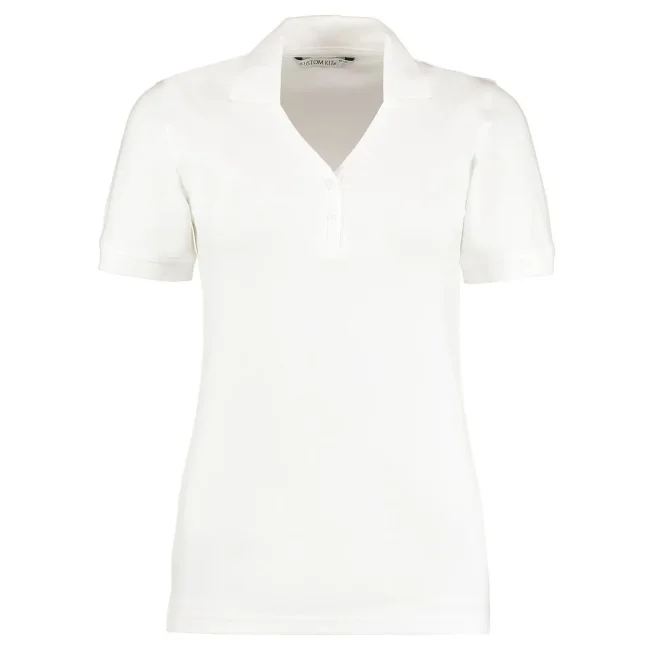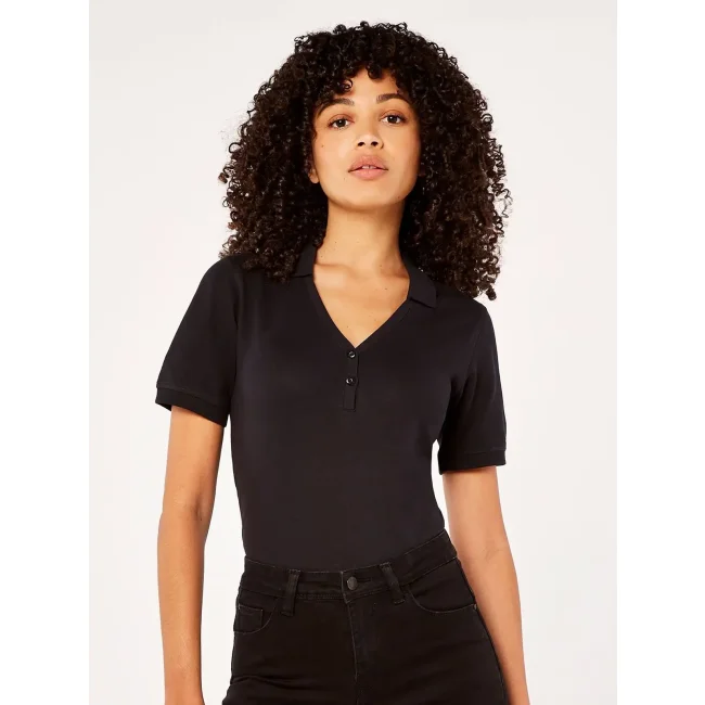 98% cotone, 2% lycra. Polo a maniche corte set-in, colletto e giromanica in costina, scollo a V con 2 bottoni tono su tono, struttura con cuciture e spacchetti laterali, nastro di rinforzo alle spalle.