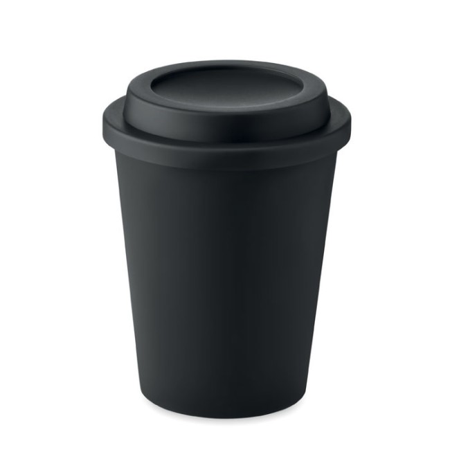 Bicchiere a doppio strato in PP. Capacità: 300 ml. Una semplice tazza tumbler che mantiene la bevanda calda per un lungo periodo di tempo. Grazie all'apertura nel coperchio è ideale da portare con sé in viaggio.