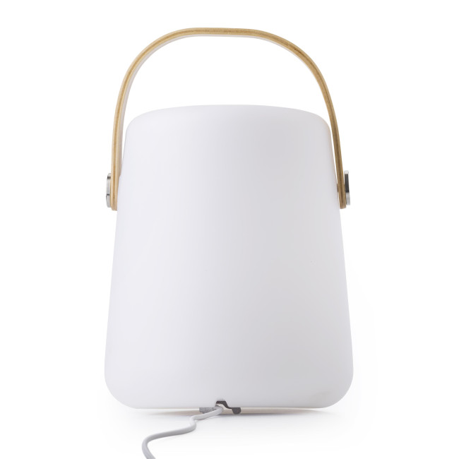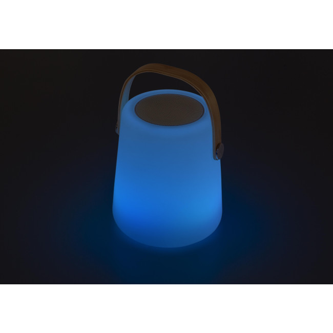 Speaker wireless in plastica con maniglia ed altoparlante nella parte superiore e maniglia, si illumina in diversi colori, ingresso 100 V - 240 V, 50 / 60Hz, uscita: 5 V / 1 A, grado impermeabile IP44, include telecomando e cavo per la ricarica da remoto