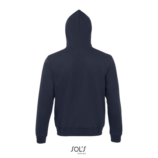SOL'S SPIKE MEN. Felpa con cappuccio e zip da uomo, 80% cotone filato ad anelli - 20% poliestere Fodera spazzolata, Esterno: 100% cotone FLEECE 280 LSF (tessuto a basso restringimento), Maniche a scomparsa, 2 tasche a marsupio anteriori, Tagliato e cucito, Cappuccio foderato con cordoncino tono su tono, Polsini e orlo a coste 2x2. Interno collo a mezzaluna, collo nastrato, cerniera YKK. OEKO-TEX®. Venduto solo con la stampa.