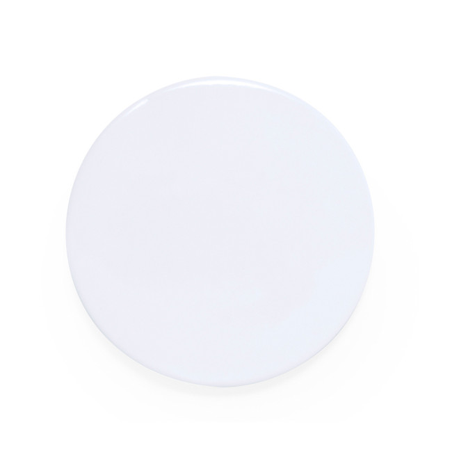 Spilla di grandi dimensioni di colore bianco, progettata per adattarsi a qualsiasi tessuto grazie alla spilla di sicurezza sul retro. Perfetta per stampare una varietà di disegni, offre una base ideale per la personalizzazione e si presta a molteplici utilizzi.