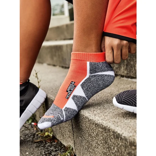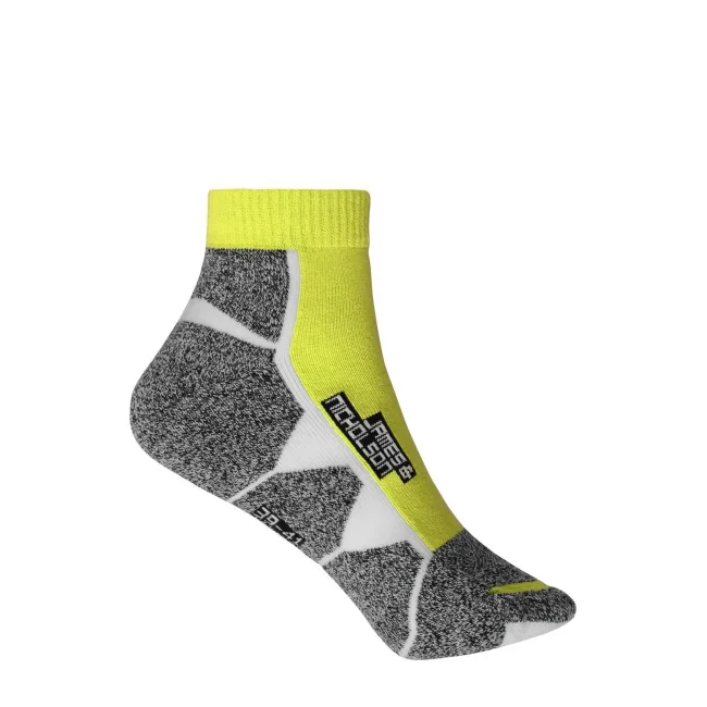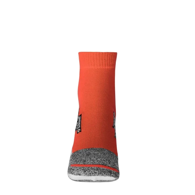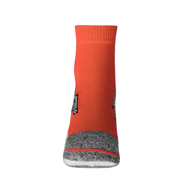 62% poliestere, 20% poliammide, 16% cotone, 2% elastane. Calzini in tessuto traspirante e regolatore di umidità, cuciture piatte, tessuto rinforzato nell'area della punta e della pianta.
