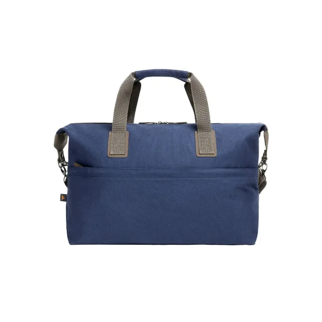 100% cotone. Borsa da viaggio/ sportiva con mpio scomparto con chiusura lampo e fondo imbottito, ampia tasca anteriore con chiusura lampo, tracolla rimovibile di lunghezza regolabile, manici con polsini. Dimensioni: 50x31x20 cm. Area personalizzabile: sulla tasca frontale 32x13 cm.