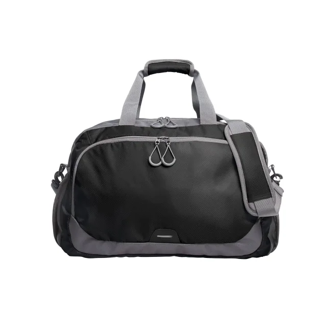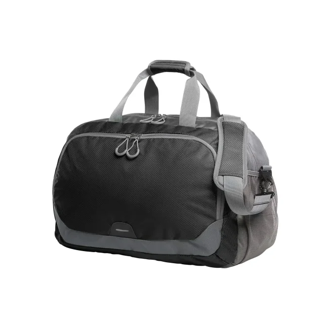 100% poliestere 420d e ripstop. Borsone dotato di ampio scomparto principale e tasca anteriore a zip con elemento catarifrangente, scomparti laterali retinati, vano portascarpe, maniglie con presa imbottita, tracolla regolabile. Capacita': Dimensioni: 48 x 33 x 22 cm, capacita': 32 litri, area di stampa: 32 x 13 cm,