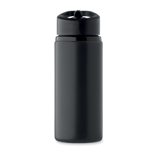 Bottiglia a singolo strato in acciaio inox riciclato (90% acciaio inox riciclato e 10% acciaio inox) con imboccatura pieghevole, cannuccia e coperchio con maniglia per il trasporto. Capacità: 500 ml. Poiché si tratta di una bottiglia a parete singola, si può verificare il trasferimento di calore.