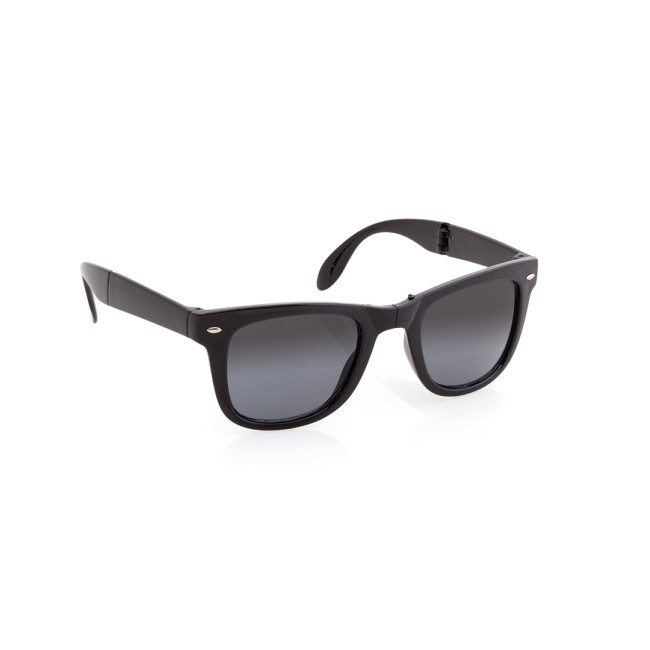 Occhiali da sole pieghevoli con protezione UV400 dal design classico. Con montatura con effetto lucido in colori divertenti e lenti nere.