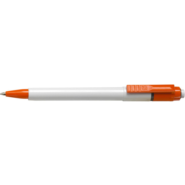 Stilolinea, penna a sfera in ABS, fusto bianco, componenti colorati, refill blu jumbo. Fornito del certificato German Dokumental Ink.