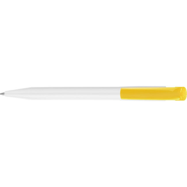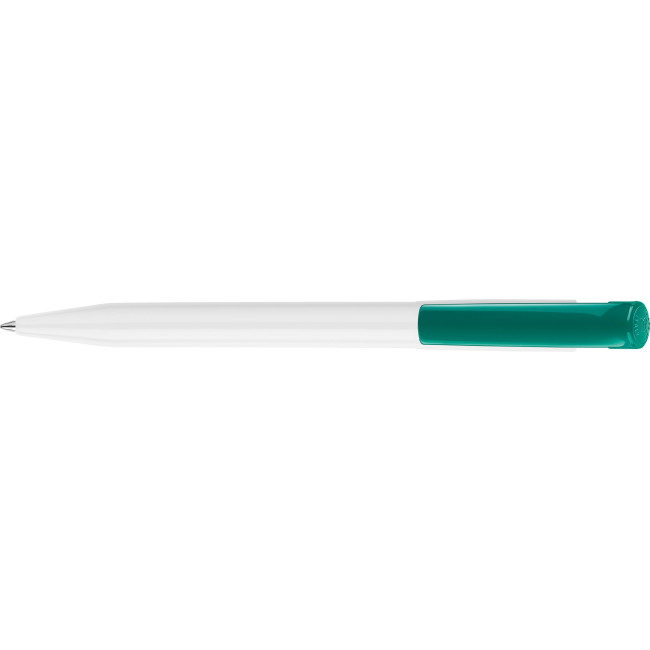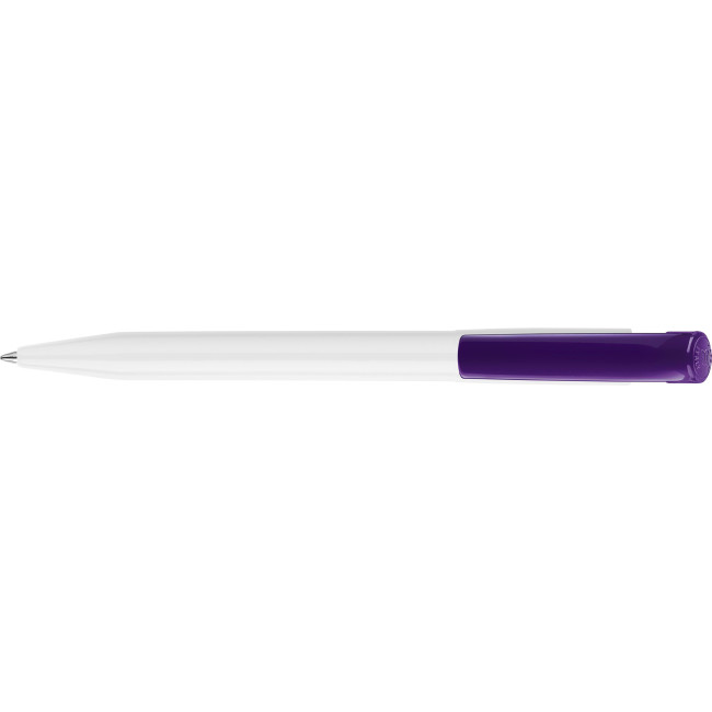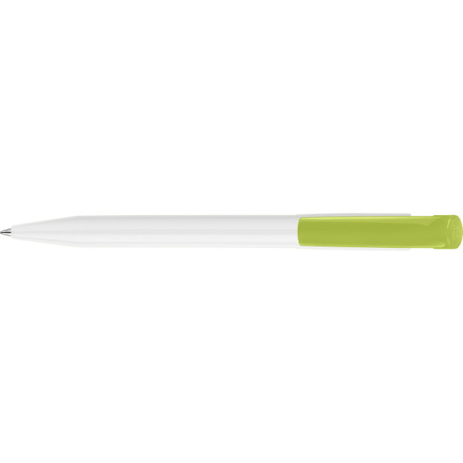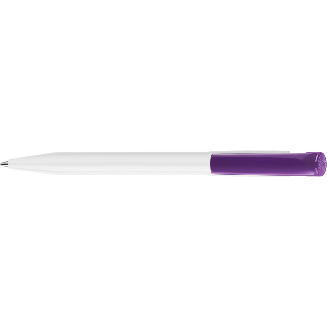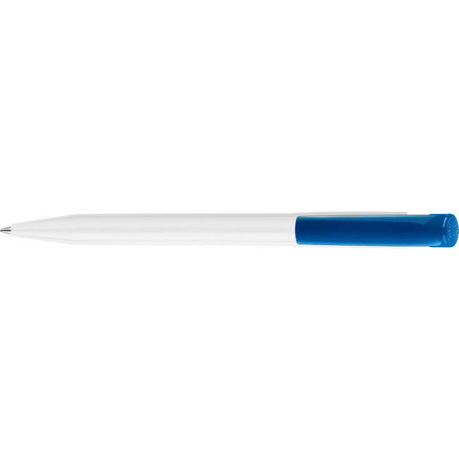 Stilolinea, penna a sfera S45 in ABS, fusto bianco, clip colorata, refill blu. Fornito del certificato German Dokumental Ink.