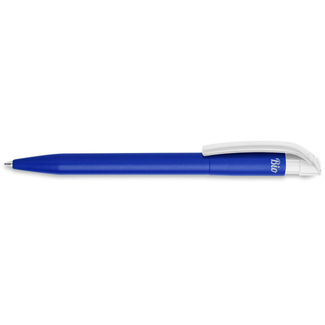 Stilolinea, penna S45 BIO, realizzata al 75% in PLA, clip bianca, refill blu. Fornito del certificato German Dokumental Ink.