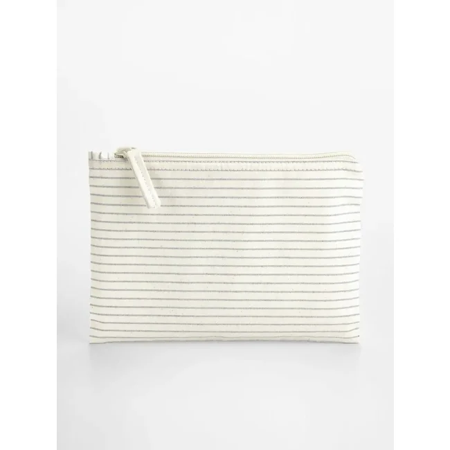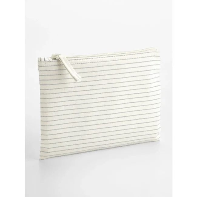 100% cotone organico. Astuccio multiuso a righe in cotone organico certificato GOTS - CU811033. Chiusura con zip dello stesso colore, etichetta strappabile. Dimensioni: S: 11,5x20cm, cap. 0,5lt. - M: 16x22,5cm, cap. 1lt, - L: 20x28cm, cap. 2lt.