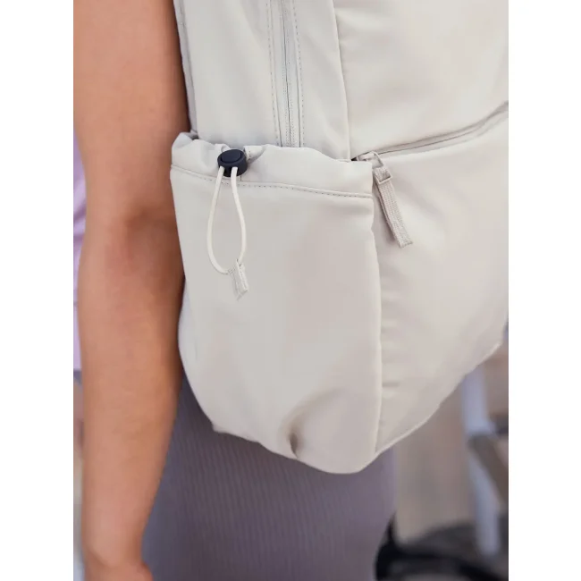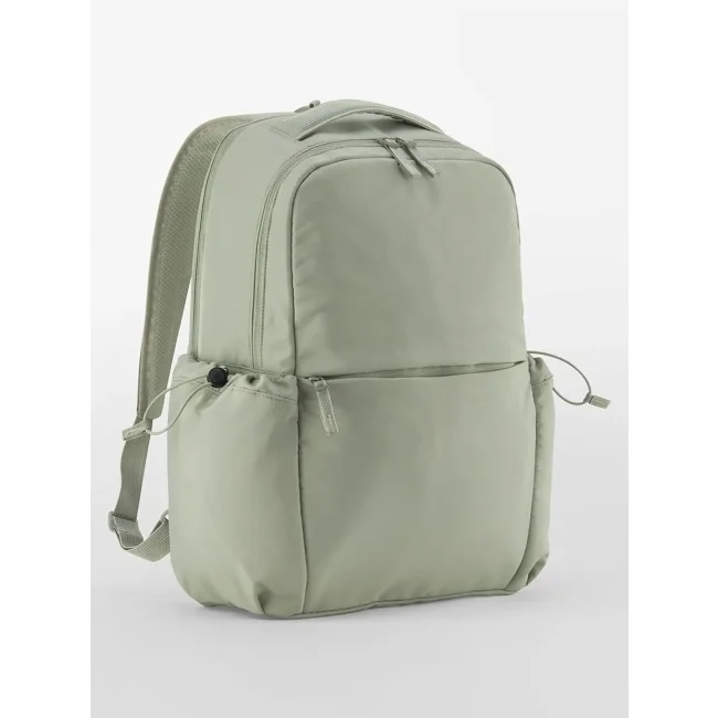 100% poliestere riciclato. Zaino per laptop fino a 16'' in poliestere riciclato certificato GRS, apertura con due zip bidirezionali, tasche laterali esterne regolabili con cordino, tasca frontale con zip e due tasche interne imbottite, cinghia posteriore per bagaglio. Dimensioni: 44x29x13cm, Capacità: 22 litri. Etichetta strappabile.