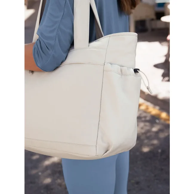 100% poliestere riciclato. Borsa in poliestere riciclato certificato GRS, apertura con due zip bidirezionali, tasca interna per laptop fino a 16'', tasche esterne regolabili con cordino, tasca frontale con zip, taschino interno. Dimensioni: 38x31x18cm, Capacità: 21 litri. Etichetta strappabile.