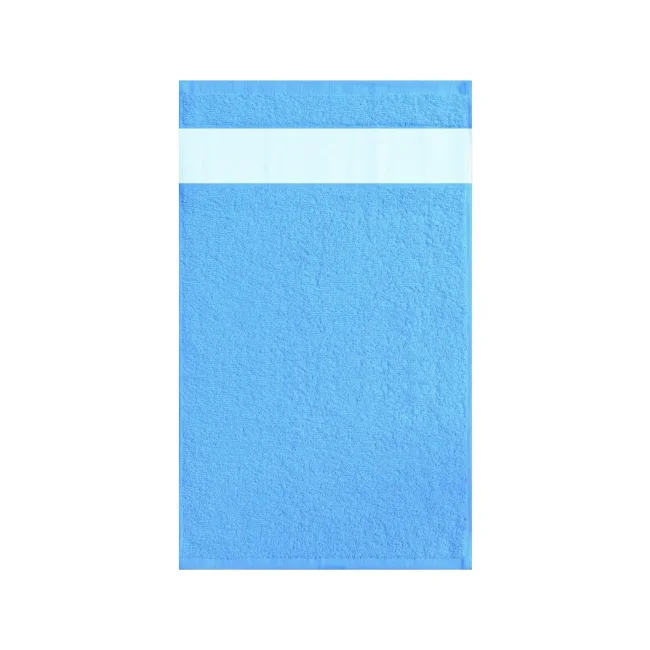 100% cotone. Telo con fascia in poliestere ideale per la stampa. Morbido al tatto e assorbente. Tipi di personalizzazione: stampa a sublimazione. 3 dimensioni: 30x50cm bordo 7cm - 50x100cm bordo 8cm - 70x140cm bordo 9cm.