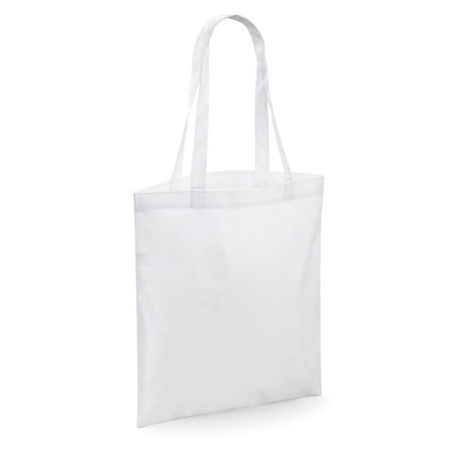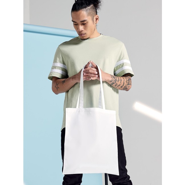 100% 300D poliestere. Shopper multiuso in poliestere. Lunghezza manico: 67 cm, dimensioni: 38 x 42 cm, capacita': 10 litri, area stampabile: 37.5 x 41.5 cm. Etichetta removibile.