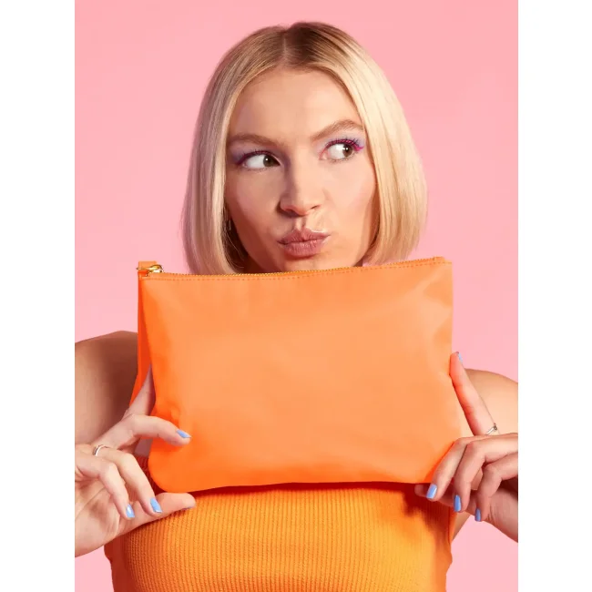 Sundae Wristlet è una pochette da polso realizzata in 100% nylon, dotata di scomparto principale con cerniera e rifiniture di alta qualità. La fodera è in poliestere riciclato. Dimensioni: 26x18 cm, area di stampa: 23x16 cm, etichetta removibile.