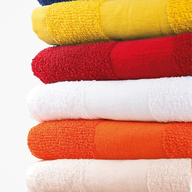 telo mare/palestra/bagno spugna bordata banda ''easy print'' personalizzabile Tecnica di stampa consigliata: Serigrafica 400 gr.