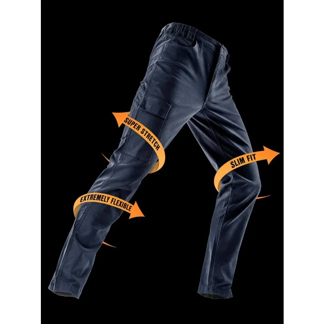 98% cotone, 2% spandex Twill con finitura mano pesca. Pantalone cargo con tasca frontale multiuso con chiusura a strappo, chiusura con bottoni e zip YKK, cuciture rinforzate su punti di stress, doppie cuciture, tasche laterali stile western, vita elasticizzata, tasca posteriore, vestibilità slim ma comoda.