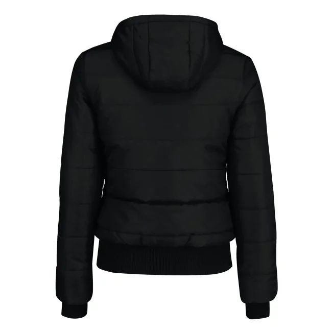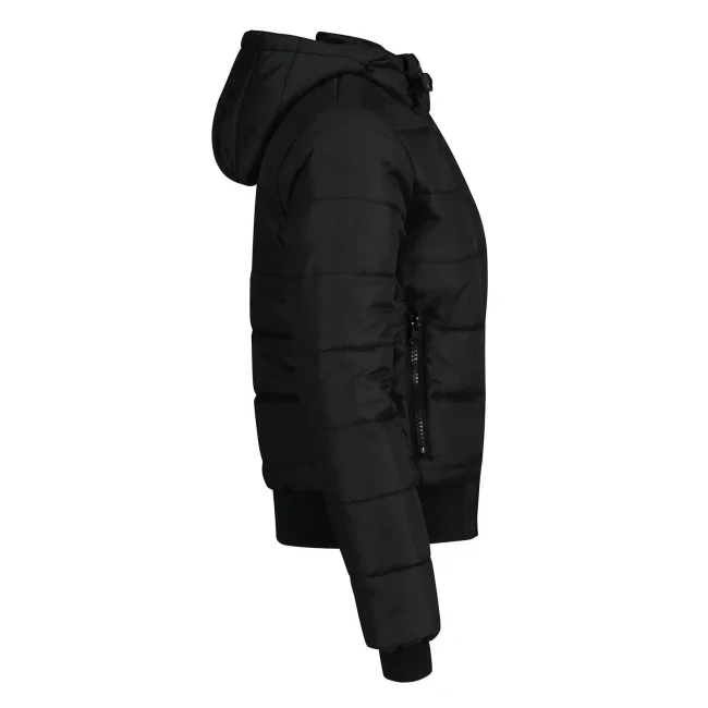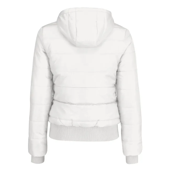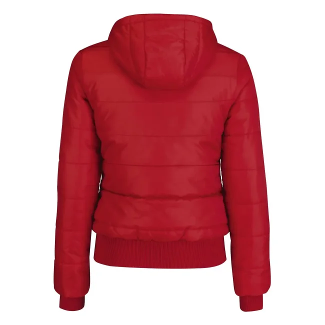 100% poliestere taffetà. Piumino impermeabile, antivento e ad isolamento termico. Cappuccio imbottito regolabile e removibile. Colletto sostenuto e fodera interna di colore contrastante, tessuto traspirante e resistente con elastan, 2 tasche laterali con zip.