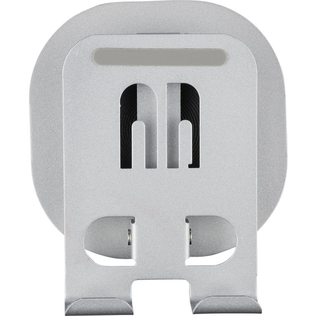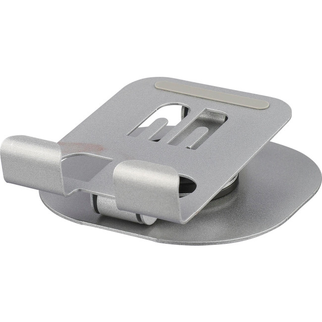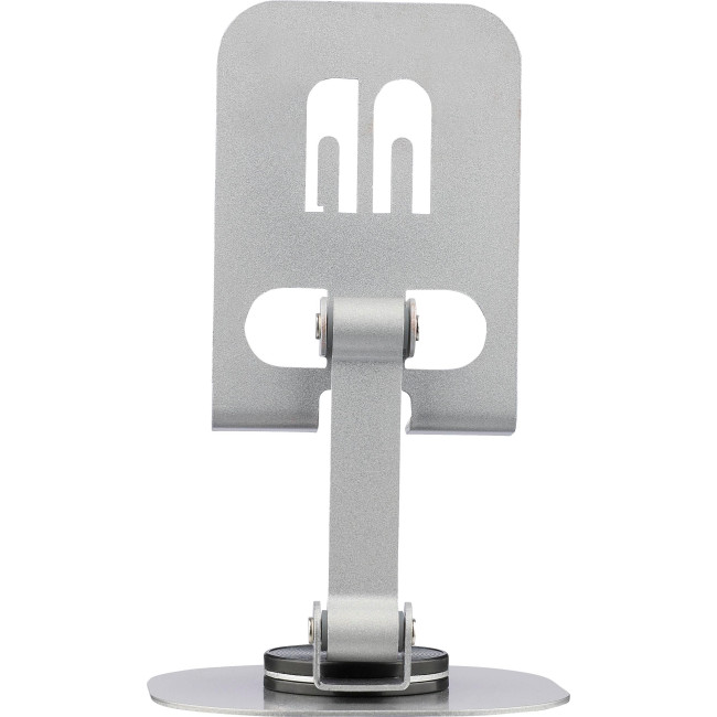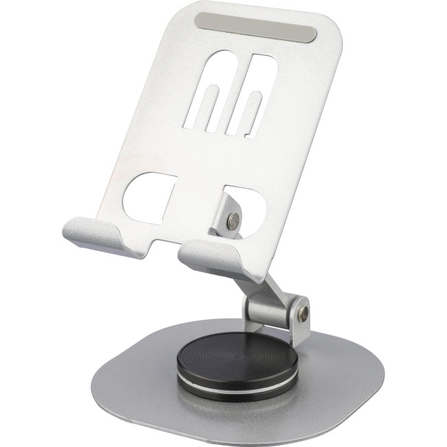 Supporto per smartphone realizzato in lega di alluminio, progettato per offrire una rotazione a 360°. È completamente pieghevole, facilitando la conservazione. Il design robusto e pesante garantisce stabilità durante l'uso, ed è confezionato singolarmente in una scatola bianca, rendendolo un accessorio pratico per ogni scrivania.