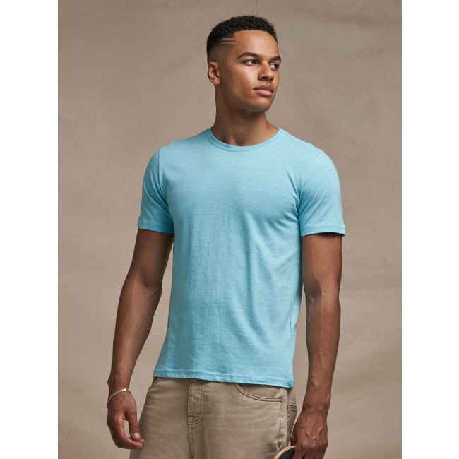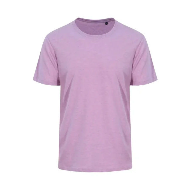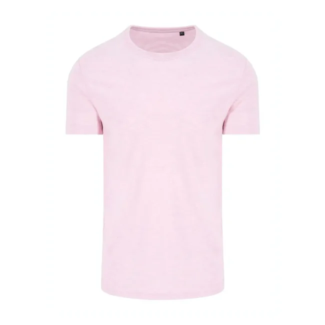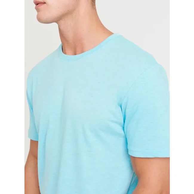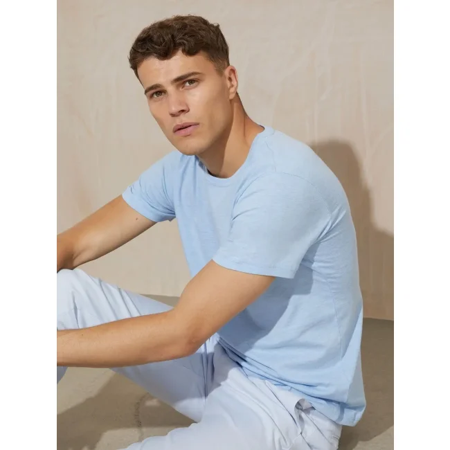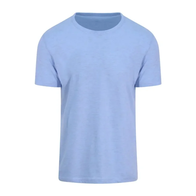 99% cotone, 1% poliestere. T-shirt unisex dalla vestibilità moderna, tessuto effetto cenere, cuciture doppie sulle maniche e sul fondo, girocollo a costine.
