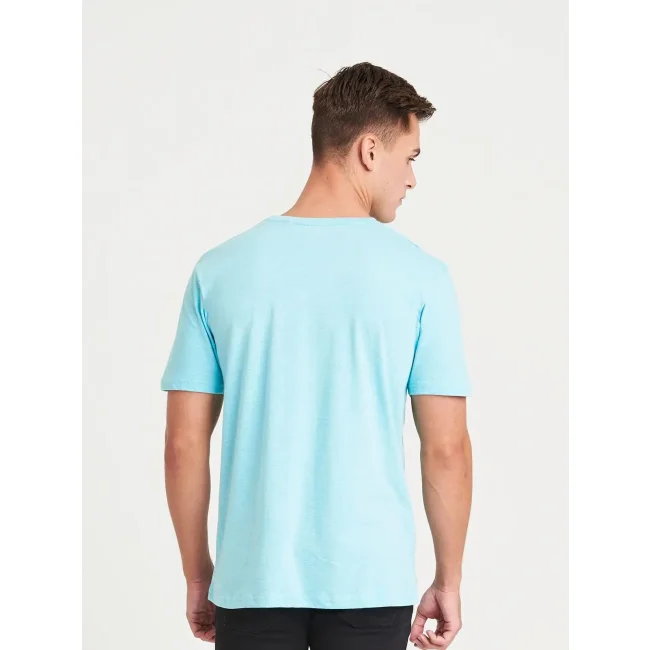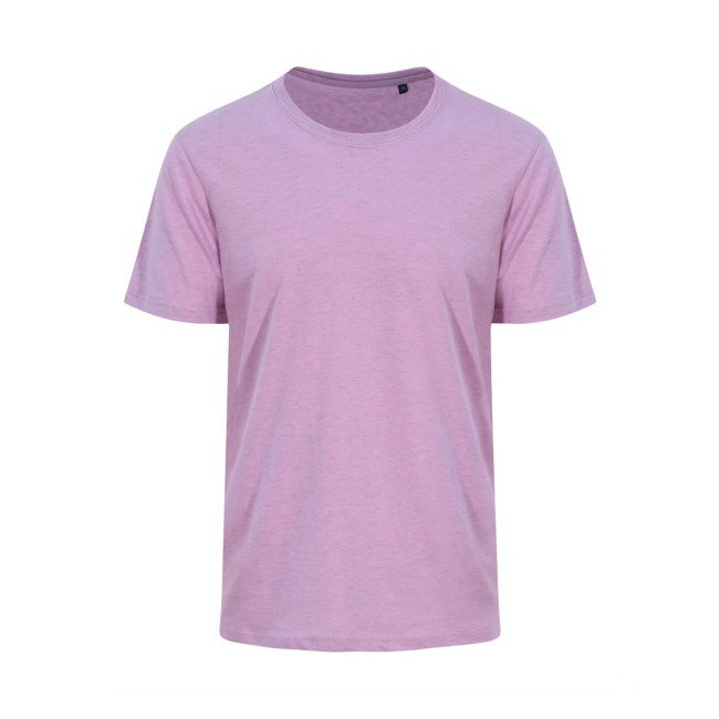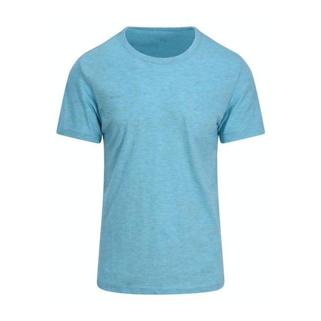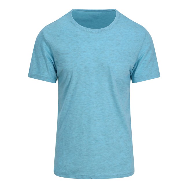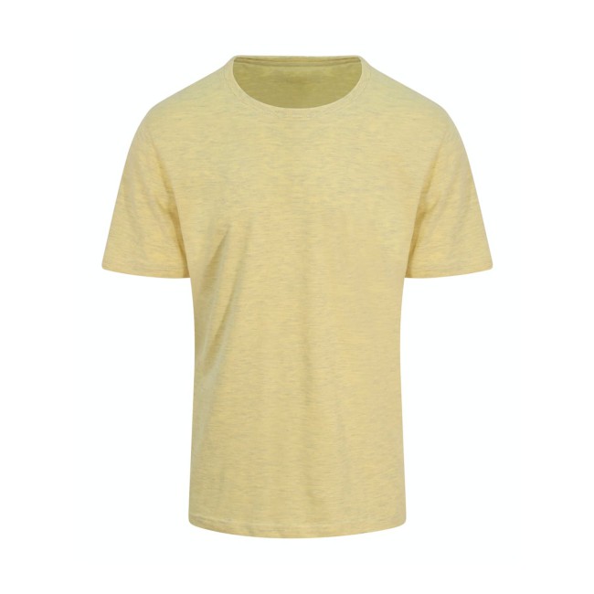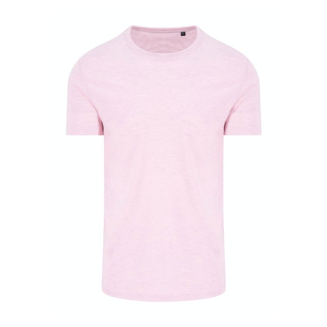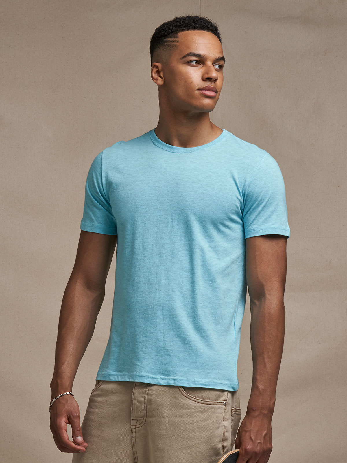 99% cotone, 1% poliestere. T-shirt unisex dalla vestibilità moderna, tessuto effetto cenere, cuciture doppie sulle maniche e sul fondo, girocollo a costine.