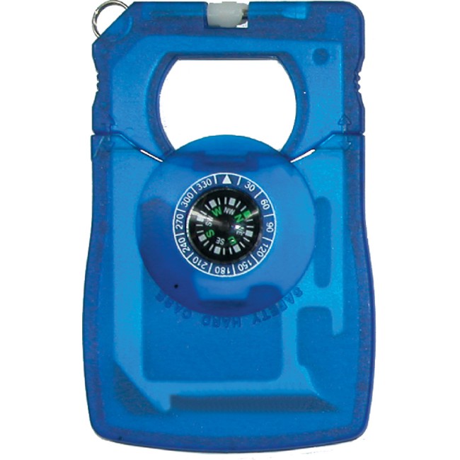 Survival card multiuso con 10 funzioni:apriscatole, chiave inglese, lente, cacciavite, bussola, doppio righello, lama, leva-coperchi, apribottiglie.