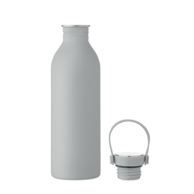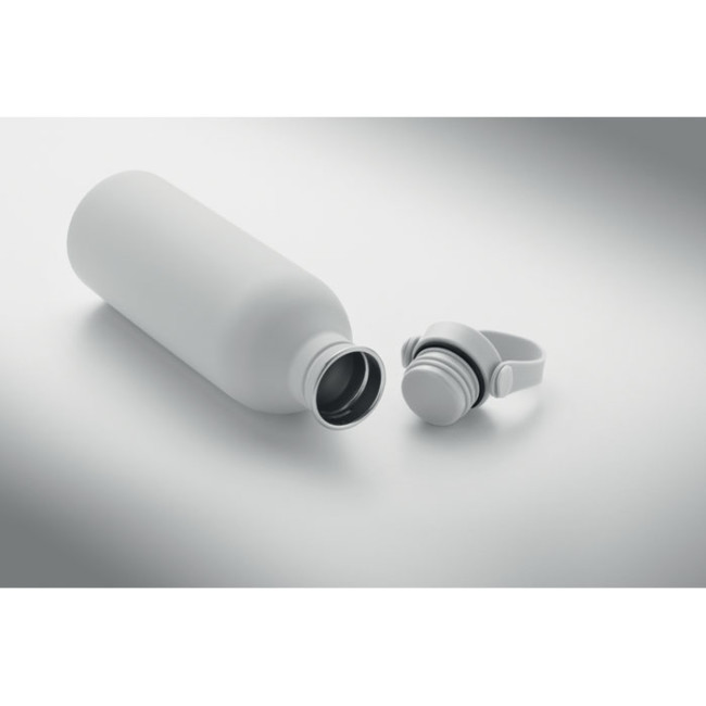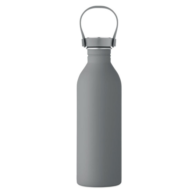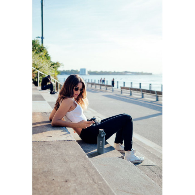 Bottiglia a singolo strato in acciaio inox riciclato al 90% e acciaio inox al 10% finitura in gomma. Coperchio in PP e SS, manico in silicone. 500 ml. Attenzione al surriscaldamento.