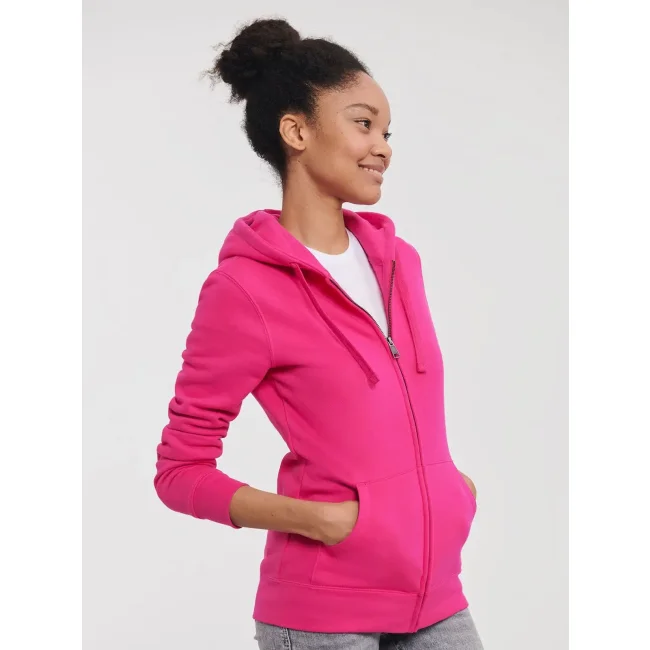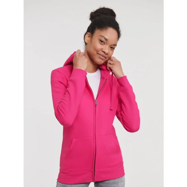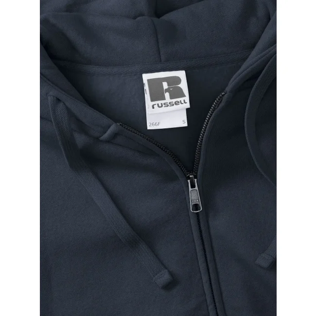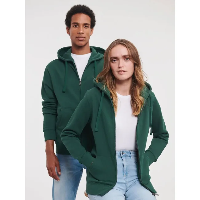80% cotone ring spun, 20% poliestere. Felpa con cerniera, maniche set-in, tasca a marsupio, nastro di rinforzo al collo, felpata internamente, cappuccio a doppio strato con cordoncino piatto, passanti per cuffie, struttura con cuciture laterali.