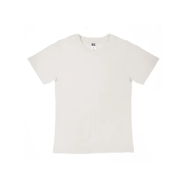 100% cotone. T-shirt girocollo manica corta set-in, struttura con cuciture laterali, doppie cuciture al collo. Taglia 0/0 con 2 bottoni a pressione sulla spalla. Composizione Grey Heather: 85% cot. 15% vis.