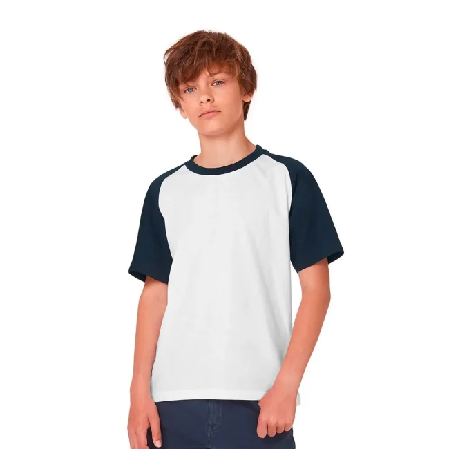 100% cotone preristretto. T-shirt maniche corte raglan, maniche e girocollo di colore contrastante, struttura con cuciture laterali, nastro di rinforzo, girocollo in costina 1x1 con elastan.