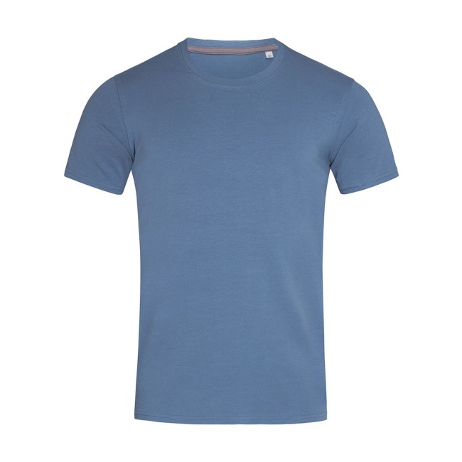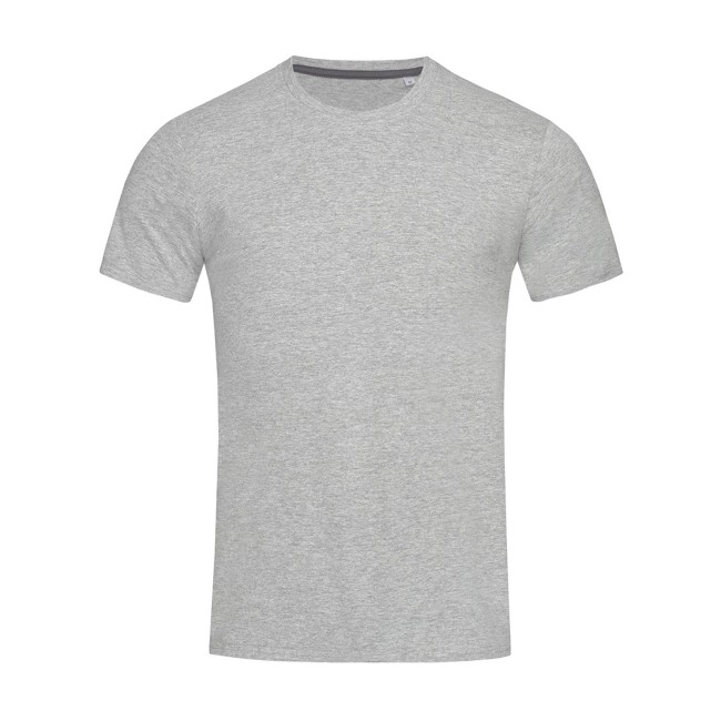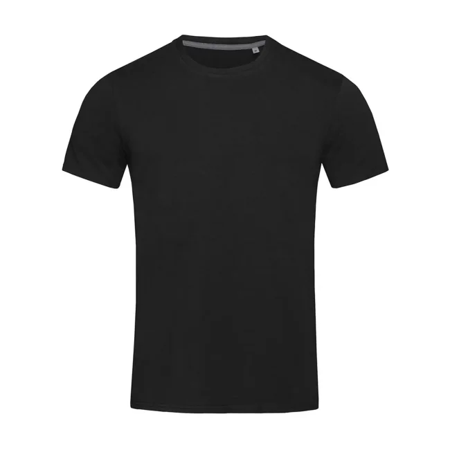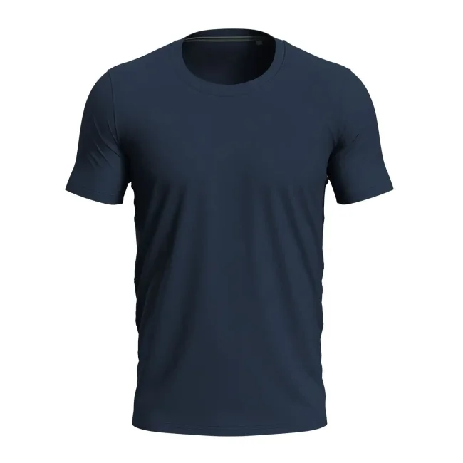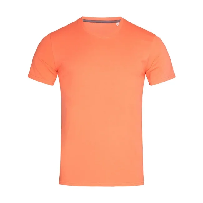 95% cotone ring-spun pettinato, 5% elastane. T-shirt manica corta single jersey, girocollo in costina, parasudore in contrasto, cuciture laterali, etichetta strappabile, lavabile a 40°. Col. GYH: 82% cot. 14% visc. 4% elas.