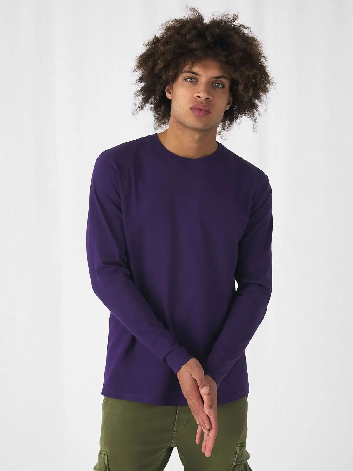 B&C #E190 LSL in cotone ring-spun resistente con maniche lunghe