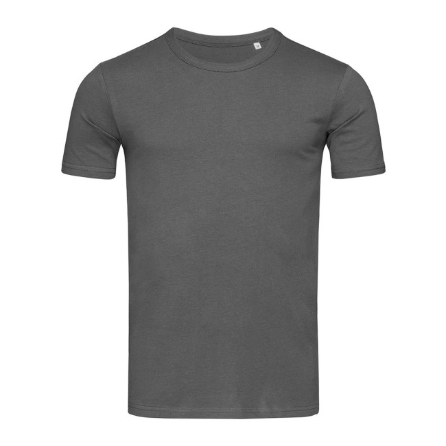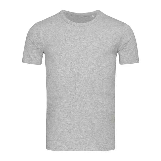 100% cotone ring-spun. Single jersey. T-shirt manica corta girocollo con orlo a costine, struttura con cuciture laterali, etichetta strappabile, lavabile a 40°C. Col. GYH: 85% cot. 15% visc.