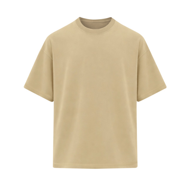 T-shirt oversize a manica corta realizzata in cotone a maglia liscia di 200 g/m². Presenta un colletto in costina 1x1 con elastan e coprisutri, oltre a cuciture laterali per una vestibilità comoda. Questo capo è perfetto per un look casual e può essere personalizzato con logo.